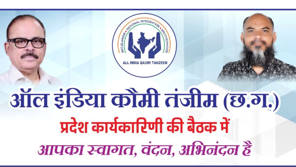 ऑल इंडिया कौमी तंजीम छत्तीसगढ़ प्रदेश के पदाधिकारियो के नियुक्ति पत्र वितरण का कार्यक्रम ऑल इंडिया कौमी तंजीम के राष्ट्रीय महासचिव जनाब मो अहमद साहब की उपस्थित में आगामी 12 फरवरी दिन इतवार दोपहर 12 बजे स्थान होटल सीटी स्टार बैजनाथ पारा रायपुर में रखा गया है जिसमे