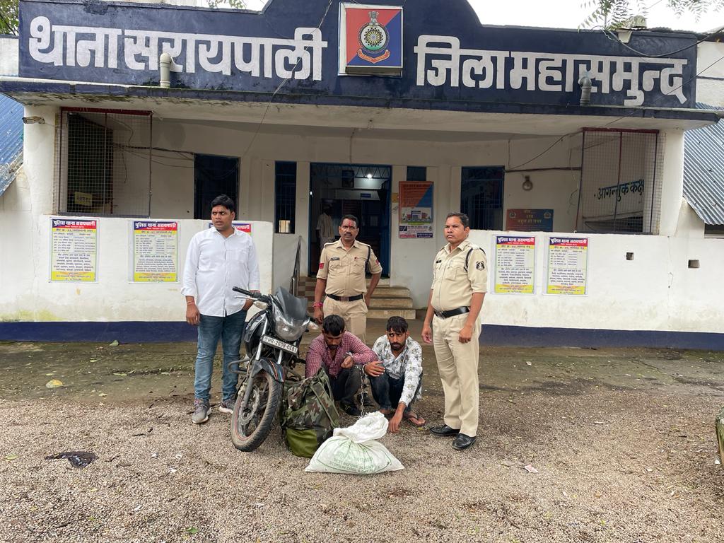 पुलिस अधीक्षक महासमुंद श्री भोजराम पटेल के निर्देशन में अतिरिक्त पुलिस अधीक्षक श्री आकाश राव गिरेपुंजे एवं एसडीओपी सरायपाली श्री विकास पाटले के मार्गदर्शन में जिला महासमुंद के अपराध एवं अपराधिक गतिविधियों पर अंकुश लगाने के मुहिम के तारतम्य में जिले के समस्त थाना एवं चौकी प्रभारियों को जिले में अवैध मादक पदार्थों पर होने वाले अपराधो पर अंकुश लगाने हेतु निर्देशित किया गया था। अवैध गतिविधियों में संलिप्त लोगों के धरपकड़ के इसी क्रम में थाना सरायपाली के थाना प्रभारी आशीष वासनिक को जरिए मुखबिर के सुचना मिला की उड़ीसा की ओर से सरायपाली के रास्ते एक काले रंग का अपाचे मोटरसाइकिल क्रमांक HR 26DB 0681 जिसमें 2 आदमी बैठे हुए हैं जो बीच में हरे रंग का बैग पकड़े हुए हैं जिसमें अवैध मादक पदार्थ गांजा भरा हुआ है जो सरसीवा रोड की ओर जाने वाले हैं कि सूचना तस्दीकी हेतु हमराह स्टाफ रवाना होकर ग्राम बालसी चौक के पास पहुंचकर घेराबंदी किए कुछ समय पश्चात सरायपाली की ओर से सरसीवा रोड की ओर से एक मोटरसाइकिल में दो व्यक्ति आते दिखे जिन्हें घेराबंदी कर रोका गया उनका नाम पता पुछने पर चालक ने अपना नाम (1) राजेश कुमार पिता जगदीश चंदर उम्र 28 साल जाति जाट साकिन चूलीबगरियन थाना आदमपुर जिला हिसार हरियाणा तथा पीछे बैठे व्यक्ती का नाम (2) अंकुर पिता सूरजभान उम्र 24 वर्ष जाति जाट साकिन बादल थाना चरखीदादरी जिला भिवानी हरियाणा का होना बताया तथा उनके बैग की तलाशी ली गई बैग की तलाशी लेने पर बैग के अंदर भूरे रंग के सेलो टेप से लिपटा हुआ कुल 05 पैकेट मादक मिला जिनसे पूछताछ करने पर गांजा को उड़ीसा से लाना और बिक्री हेतू हरियाणा ले जाना बताए जिनके संयुक्त कब्जे से(1) 05 किलो अवैध मादक पदार्थ गांजा कीमती 100000 रूपये (2) काले रंग का अपाचे मोटरसाइकिल क्रमांक HR 26DB 0681 पुरानी इस्तेमाली कीमती 40000 रूपये (3)02 नग मोबाइल कीमती 10000 रूपये कुल जुमला कीमती 150000 रूपये को समक्ष गवाहन जप्त कर आरोपियों का कृत्य अपराध धारा 20(b) ndps act का पाए जाने से आरोपियों को गिरफ्तार कर थाना सरायपाली में अपराध क्रमांक 320/22, धारा 20 (ख) नारकोटिक एक्ट कायम कर रिमांड पर भेजा जाना हैं संपूर्ण कार्यवाही मे उप निरीक्षक अनिल पालेश्वर प्रधान आरक्षक सुखलाल भोई आरक्षक प्रकाश साहू, प्रसन्न स्वाई, मोहन साहू व समस्त स्टाफ थाना सरायपाली का योगदान रहा।