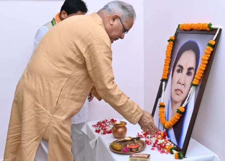 मुख्यमंत्री भूपेश बघेल ने आज अपने निवास कार्यालय में छत्तीसगढ़ की प्रथम महिला सांसद मिनीमाता जी की पुण्यतिथि पर उनके तैलचित्र पर पुष्प अर्पित कर नमन किया।