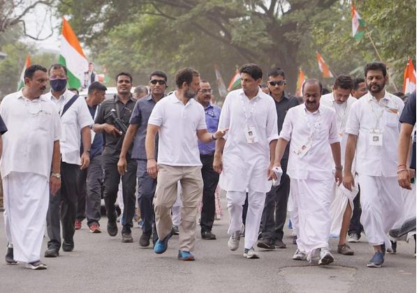 कांग्रेस की भारत जोड़ो 414 किलोमीटर की दूरी पूरी कर सोमवार को केरल के पलक्कड़ पहुंच चुकी है। यात्रा में राहुल गांधी और उनके साथ दीपेंद्र हुड्डा, राजस्थान के पूर्व मंत्री हरीश चौधरी भी शामिल हैं। तीनों नेता आज लगातार कई किलोमीटर पैदल चले और बीच-बीच में एक दूसरे से बातचीत कर रहे थे। इस दौरान राहुल गांधी अपने फोन को भी लगातार देख रहे हैं।