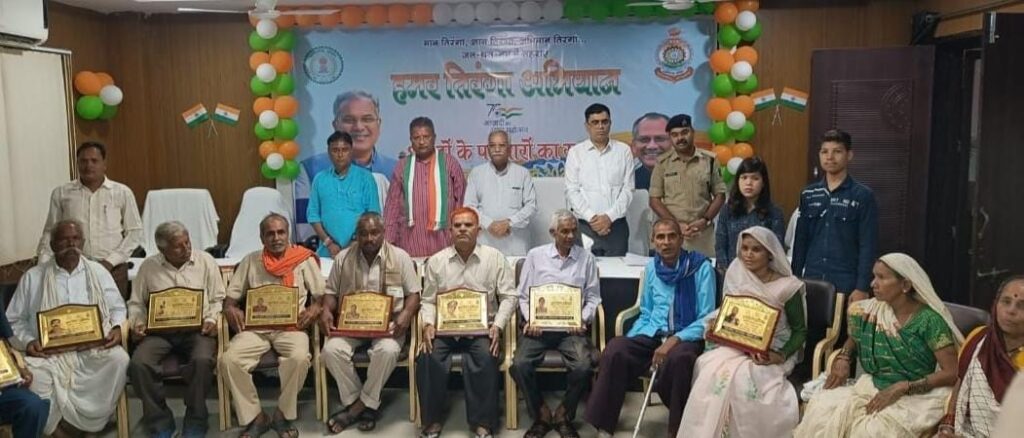 पुलिस कार्यालय सभाकक्ष में मुख्यमंत्री भूपेश बघेल के निर्देशानुसार अमर शहीद जवानों को श्रद्धांजलि अर्पित करने के लिए हमर तिरंगा सम्मान समारोह कार्यक्रम आयोजित किया गया।