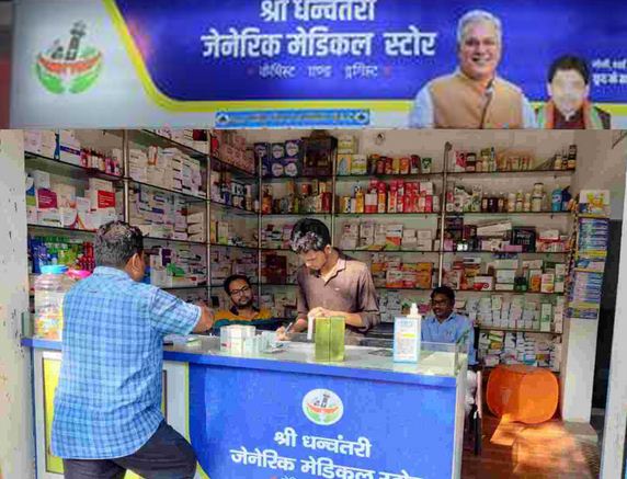 रायपुर, छत्तीसगढ़ शासन द्वारा नागरिकों को उच्च गुणवत्ता की जेनेरिक दवाएं सस्ती दर पर उपलब्ध कराई जा रही है। इसके लिए राज्य के सभी नगरीय निकायों में श्री धनवंतरी जेनेरिक मेडिकल स्टोर योजना के तहत जेनेरिक दवाओं की दुकानों का संचालन किया जा रहा है। इन दुकानों में देश की ख्याति प्राप्त कंपनियों की जेनेरिक दवाईयों पर 50 से 70 प्रतिशत तक की छूट दी जा रही है। धनवन्तरी दवा दुकानों में सर्दी, खांसी, बुखार, ब्लड प्रेशर, इन्सुलिन के साथ गंभीर बीमारियों की दवा, एंटीबायोटिक, सर्जिकल आईटम भी रियायती मूल्य पर जरूरतमंदों को उपलब्ध कराए जा रहे हैं।