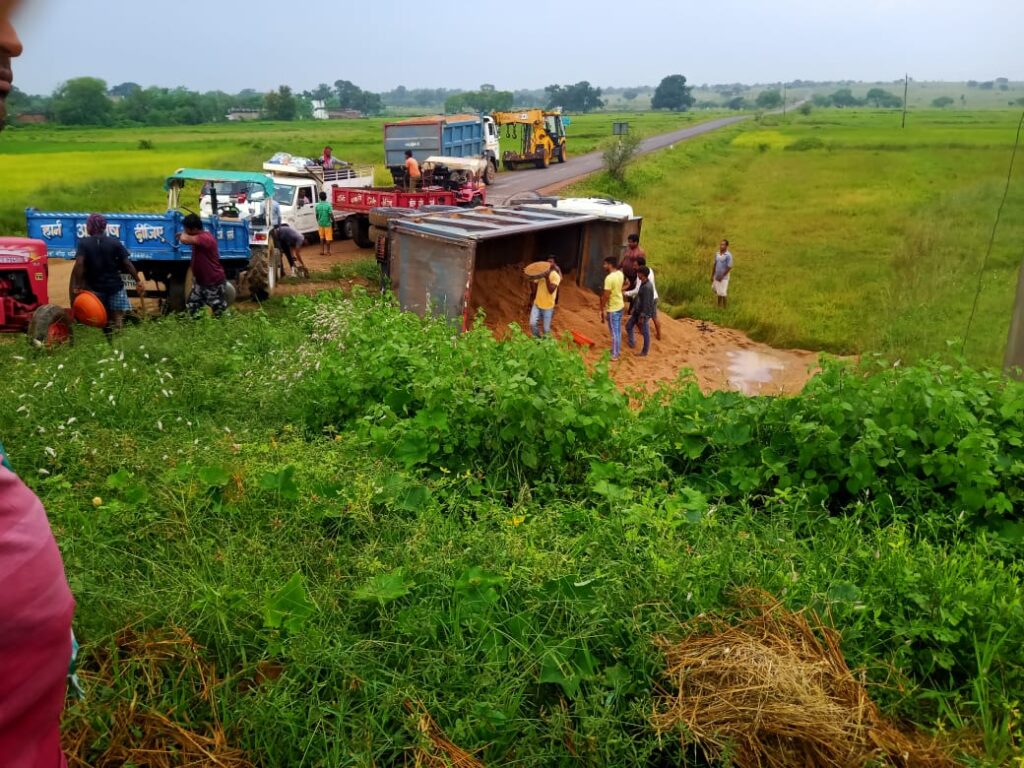 शुक्रवार को एक मामला अंतरला में प्रकाश में आया, जहां एक ट्रक रेत से भरा हुआ अनियंत्रित होकर पलट गया। ट्रक ड्राइवर गांव वालों को धमकी भी दे रहा था। गांव के ग्रामीण भारी वाहनों के गुजरने से अति परेशान है। रोड से लगा हुआ स्कूल भी है जहां दुर्घटना की आशंका बनी रहती है।