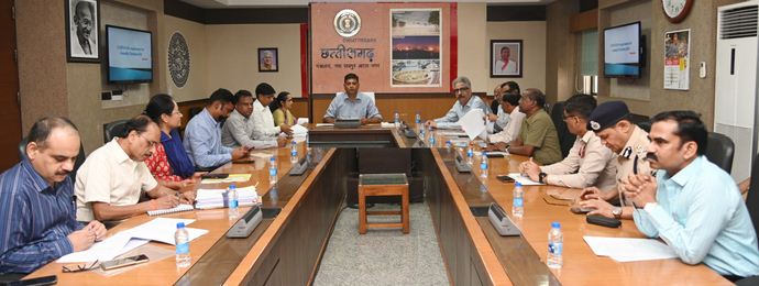 वीडियो कॉन्फ्रेंस में आयोजित इस बैठक में लोक स्वास्थ्य एवं परिवार कल्याण तथा चिकित्सा शिक्षा विभाग के अपर मुख्य सचिव श्रीमती रेणु जी पिल्ले, सचिव शिक्षा डॉ. एस. भारती दासन, गृह विभाग के सचिव श्री अरूण देव गौतम, राजस्व एवं आपदा प्रबंधन विभाग के सचिव श्री एन.एन.एक्का, खाद्य विभाग के सचिव श्री टोपेश्वर वर्मा सहित परिवहन, लोक निर्माण, लोक स्वास्थ्य यांत्रिकी, वन, नगरीय प्रशासन तथा ऊर्जा विभाग सहित अन्य विभागों के वरिष्ठ अधिकारी मौजूद थे।