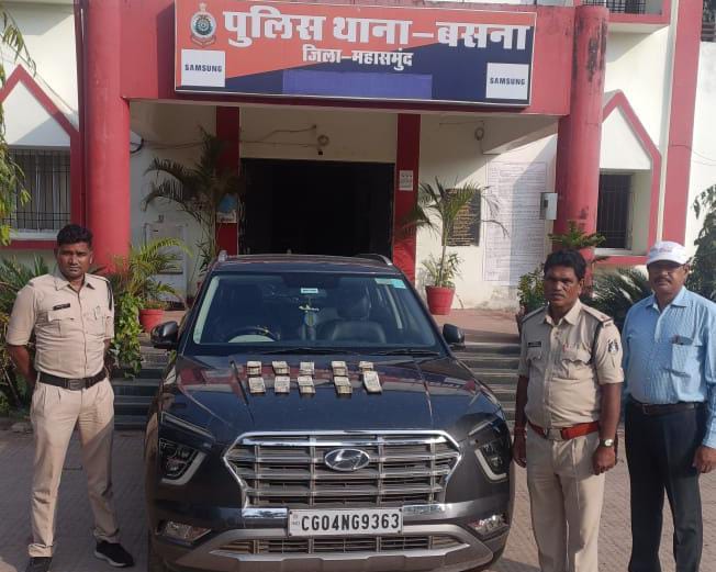 पुलिस अधीक्षक महासमुंद धर्मेन्द्र सिंह द्वारा समस्त थाना प्रभारीयों को जिले मे अवैध गतिविधियो पर प्रभावी कार्यवाही करने हेतु दिनांक 04.11.2023 को हमराह स्टाफ पेट्रोलिंग एवं वाहन चेकिंग हेतु बिलाईगढ रोड की ओर रवाना हुआ था कि वाहन चेकिंग के दौरान बसना की ओर से आ रही संदिग्ध वाहन क्रेटा कार क्र0 CG 04 NG 9363 को ओव्हर ब्रीज बिलाईगढ रोड में रोककर चेक किया गया! वाहन में एक व्यक्ति सवार मिला, जिसे पूछताछ करने पर अपना नाम नितेश साहू, पिता मिनकेतन साहू, उम्र 37 साल साकिन जीराडबरी, थाना बसना, जिला महासमुन्द छ0ग0 बताया!