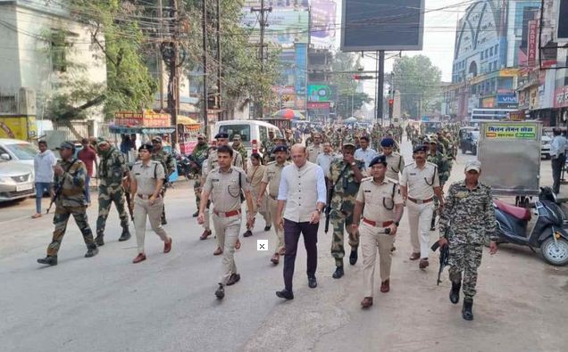 रायपुर। विधानसभा चुनाव और 17 दिसंबर को होने वाले मतदान को देखते हुए शांतिपूर्ण व निष्पक्ष मतदान, अपराधों की रोकथाम सहित सुरक्षा व कानून व्यवस्था के मद्देनजर 15 नवंबर को रायपुर पुलिस ने फ्लैग मार्च किया।