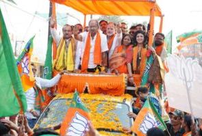 जगह-जगह फूलों की बारिश से बृजमोहन अग्रवाल का स्वागत किया गया।