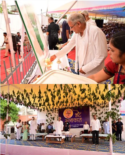 छत्तीसगढ़ महतारी की पूजा अर्चना कर मुख्यमंत्री श्री बघेल ने की भेंट-मुलाकात की शुरुआत।