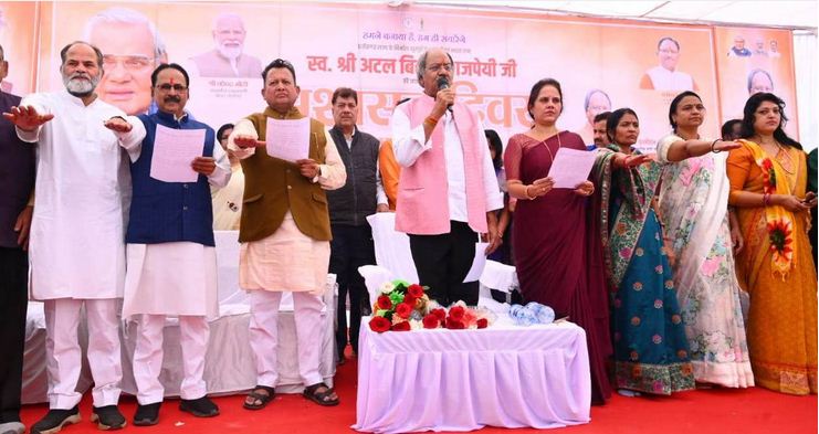 रायपुर। भारतीय जनता पार्टी के प्रमुख संस्थापक सदस्य भाजपा के पितृ पुरुष भारत के पूर्व प्रधानमंत्री छत्तीसगढ़ निर्माता स्व. अटल बिहारी वाजपेई की 99वीं जन्म जयंती को भारतीय जनता पार्टी विशेष रूप मनाया 25 दिसंबर 1924 को अटल बिहारी वाजपेई का जन्म ग्वालियर में हुआ वे 3 बार भारत के प्रधानमंत्री रहे और 9 बार सांसद भी रहे वे भाजपा मुख्य संस्थापक सदस्य थे जो आज विश्व का सबसे बड़ा राजनैतिक दल है। 25 दिसंबर को अटल जी के जन्म जयंती के अवसर पर भाजपा द्वारा पूरे देश में विभिन्न आयोजन किए गए सभी कार्यक्रमों का आयोजन अलग अलग स्तर पर आयोजित किया गया राज्य स्तरीय , जिला स्तरीय सहित संगठन की सूक्ष्म इकाई बूथों तक अटल जी की जन्मजयंती पर विभिन्न कार्यक्रमों का आयोजन किया गया रायपुर शहर जिला द्वारा भी अटल की जयंती पर विभिन्न कार्यक्रमों का आयोजन किया गया। जिला भाजपा अध्यक्ष जयंती पटेल के नेतृत्व में शहर जिला भाजपा एवं सभी मोर्चा प्रकोष्ठों द्वारा विभिन्न कार्यक्रमों का आयोजन किया गया सुबह से ही विभिन्न स्थानों पर कार्यक्रमों का आयोजन किया गया ।