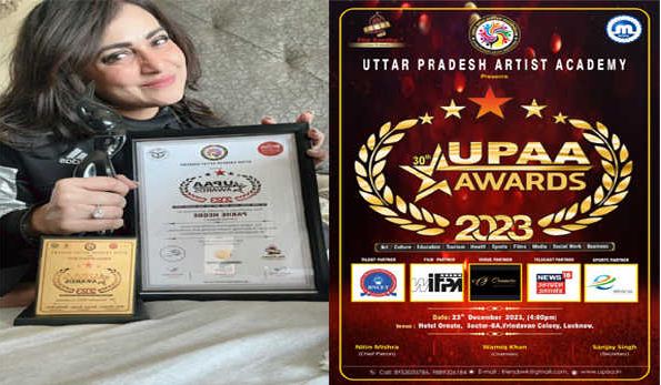 पाखी हेगड़े को उत्तर प्रदेश आर्टिस्ट अकादमी अवार्ड उत्तर प्रदेश के बड़े आईएएस अधिकारी अवनीश अवस्थी से मिला।