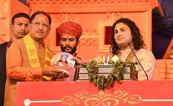 सीएम पहुंचे श्रीमद भागवत कथा में, अनिरुद्धाचार्य महाराज से किया आशीर्वाद ग्रहण