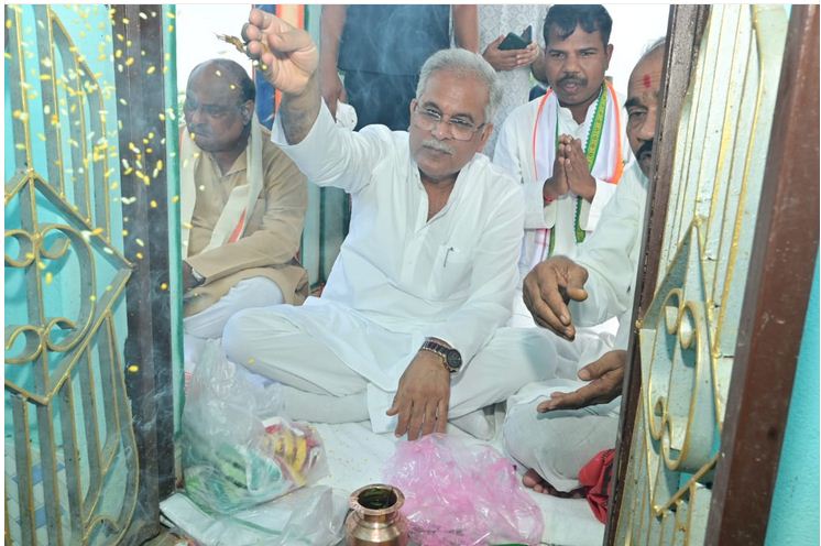 रायपुर. मुख्यमंत्री श्री भूपेश बघेल विधानसभा क्षेत्र चंद्रपुर में भेंट-मुलाकात अभियान के क्रम में आज ग्राम मुक्ता में शिव मंदिर दर्शन के लिए पहुँचे और पारंपरिक विधि-विधान से पूजा-अर्चना की। मुख्यमंत्री ने प्रभु शिव से प्रदेशवासियों की सुख, समृद्धि और ख़ुशहाली की कामना की। इसके साथ ही मुख्यमंत्री श्री भूपेश बघेल ने मंदिर परिसर में बादाम के पौधे का रोपण किया। ग्राम मुक्ता निवासी एक पिता ने अपने पुत्र की स्मृति में मार्च 2019 में शिव मंदिर का निर्माण कराया है। भगवान शिव की पूजा अर्चना और पौधरोपण में राजस्व मंत्री श्री जयसिंह अग्रवाल, चंद्रपुर विधायक श्री राम कुमार यादव सहित विभिन्न जनप्रतिनिधि और अधिकारी शामिल हुवे। मंदिर के पुजारी श्री उज्जवल प्रसाद शर्मा है।
