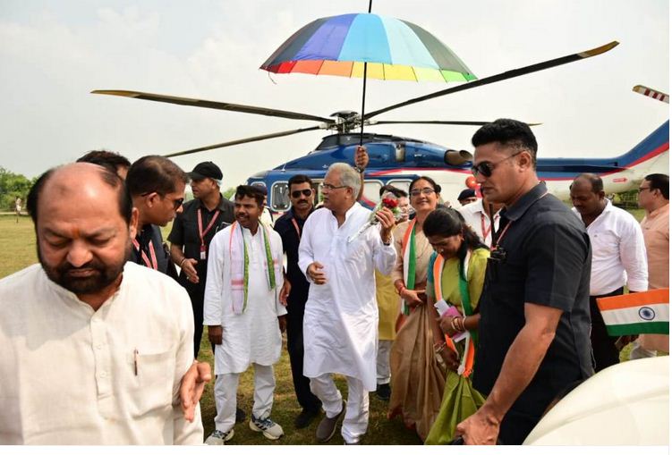 रायपुर. मुख्यमंत्री श्री भूपेश बघेल के हेलीपेड पहुंचने पर जनप्रतिनिधियों और ग्रामीणों ने किया आत्मीय स्वागत।