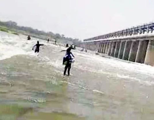 जांजगीर चांपा. शिवरीनारायण में महानदी पर बने बैराज के गेट अचानक खोल दिए जाने से इलाके में हड़कंप मच गया. बिना सूचना दिए गेट खोलने से नदी में नहा रहा एक युवक बह गया. वहीं बैराज के नीचे नहा रहे कई लोगों के बाइक और मोबाइल भी पानी में बह गए.