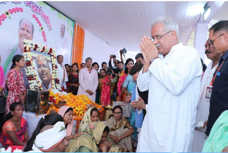 मुख्यमंत्री श्री भूपेश बघेल आज कांकेर जिले के नथियानवगांव में छत्तीसगढ़ विधानसभा के उपाध्यक्ष स्वर्गीय श्री मनोज सिंह मंडावी के श्रद्धांजलि और शान्तिभोज के कार्यक्रम में शामिल हुए। मुख्यमंत्री ने इस अवसर पर स्वर्गीय श्री मंडावी के चित्र पर पुष्प अर्पित कर उन्हें श्रद्धांजलि दी।