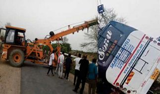 उत्तर प्रदेश में फिरोजाबाद जिले के नसीरपुर क्षेत्र में आगरा लखनऊ एक्सप्रेसवे पर तीर्थ यात्रियों से भरी बस पलटने से उसमे सवार तीन यात्रियों की मृत्यु हो गयी जबकि 27 अन्य घायल हो गये।