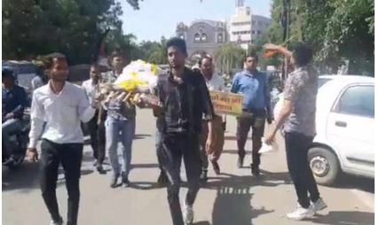 मध्यप्रदेश के देवास जिले में नगर निगम कर्मचारियों का अनोखा प्रदर्शन देखने को मिला। निगम कर्मचारियों ने पॉलिथीन की अर्थी निकाली। शवयात्रा निकालते हुए पॉलिथीन यूज नहीं करने को लेकर शहरवासियों को जागरूकता का संदेश दिया।