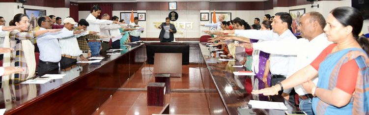 रायपुर. लौह पुरूष एवं भारत के प्रथम गृहमंत्री सरदार वल्लभ भाई पटेल की जयंती ‘राष्ट्रीय एकता दिवस’ के अवसर पर आज राजभवन सचिवालय में राज्यपाल के उप सचिव श्री दीपक कुमार अग्रवाल ने अधिकारियों एवं कर्मचारियों को शपथ दिलवाई। साथ ही सतर्कता जागरूकता सप्ताह के पहले दिन ‘भ्रष्टाचार मुक्त भारत-विकसित भारत’’ पर सत्य निष्ठा की प्रतिज्ञा भी ली गई। सभी अधिकारियों एवं कर्मचारियों ने ‘राष्ट्रीय एकता दिवस’ पर शपथ ली कि राष्ट्र की एकता, अखंडता और सुरक्षा को बनाए रखने और देशवासियों के बीच यह संदेश फैलाने के लिए भरसक प्रयत्न करेंगे। साथ ही देश की आंतरिक सुरक्षा सुनिश्चित करने के लिए अपना योगदान करने का भी संकल्प लिया। साथ ही ‘भ्रष्टाचार मुक्त भारत-विकसित भारत’’ के लिए शपथ ली कि जीवन के सभी क्षेत्रों में ईमानदारी तथा कानून के नियमों का पालन करेंगे, ना तो रिश्वत लेंगे और ना ही रिश्वत देंगे, सभी कार्य ईमानदारी तथा पारदर्शी रीति से करेंगे, जनहित में कार्य करेंगे, अपने निजी आचरण में ईमानदारी दिखाकर उदाहरण प्रस्तुत करेंगे और भ्रष्टाचार की किसी भी घटना की रिपोर्ट उचित एजेंसी को देंगे।