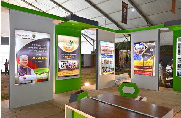 साइंस कॉलेज मैदान पर राज्योत्सव के दौरान विकास प्रदर्शनी में राज्य शासन के 21 विभागों के स्टॉल, शिल्पग्राम में 40 स्टाल, फूड जोन में 24 स्टाल, थीम हैंगर में विभिन्न उद्योगों और सार्वजनिक उपक्रमों के स्टॉल, 40 व्यावसायिक स्टाल बनाए गए हैं।