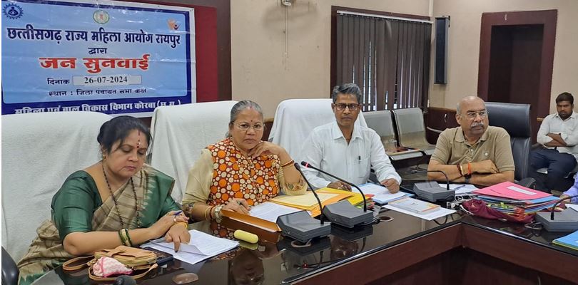 कोरबा. छत्तीसगढ़ राज्य महिला आयोग की अध्यक्ष डॉण. किरणमयी नायक एवं सदस्य श्रीमती अर्चना उपाध्याय ने आज जिला कलेक्टर कोरबा सभा कक्ष में महिला उत्पीडन से संबंधित प्रकरणों पर जन सुनवाई की। छत्तीसगढ़ राज्य महिला आयोग के अध्यक्ष डॉ किरणमयी नायक की अध्यक्षता में आज 261 वीं एवं कोरबा जिला की 8 वीं सुनवाई हुई। कोरबा जिले में आयोजित जन सुनवाई में कुल 25 प्रकरण सुनवाई की गई।