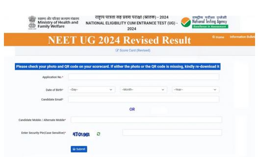 नई दिल्ली. नेशनल टेस्टिंग एजेंसी (एनटीए) ने मेडिकल प्रवेश परीक्षा नीट का रिवाइज्ड रिजल्ट जारी कर दिया है। परीक्षार्थी neet.ntaonline.in व exams.nta.ac.in/NEET पर एप्लीकेशन नंबर व डेट ऑफ बर्थ डालकर नया स्कोरकार्ड डाउनलोड कर सकते हैं। नए स्कोर कार्ड लिंक पर 26 जुलाई भी लिखा गया है। प्रश्न नंबर 19 के दो उत्तरों की बजाय एक उत्तर संबंधी सुप्रीम कोर्ट के फैसले से करीब 4.20 लाख अभ्यर्थियों के 5-5 अंक घटाए गए हैं। इससे लाखों स्टूडेंट्स की रैकिंग में बदलाव हुआ है। टॉपरों की संख्या 61 से घटकर 17 रह गई है। नीट के जरिए ही देश के तमाम मेडिकल कॉलेजों में एमबीबीएस, बीडीएस, बीएएमस, बीएचएमस, बीयूएमस ( MBBS, BDS, BSMS, BAMS, BHMS, BUMS ) और अन्य विभिन्न अंडर ग्रेजुएट मेडिकल कोर्सेज में दाखिला होता है। इसके अलावा मिलिट्री नर्सिंग सर्विस (एमएनएस) के लिए भी अभ्यर्थी नीट यूजी परीक्षा के मार्क्स के जरिए आर्म्ड फोर्सेज मेडिकल सर्विस हॉस्पिटल के बीएससी नर्सिंग कोर्स में एडमिशन ले सकेंगे।