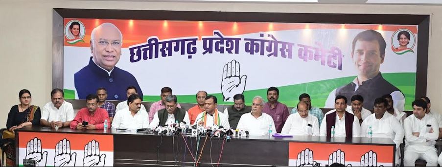प्रदेश कांग्रेस मुख्यालय राजीव भवन में कांग्रेस की महत्वपूर्ण पत्रकारवार्ता हुई। पत्रकार वार्ता को प्रदेश कांग्रेस अध्यक्ष दीपक बैज, नेता प्रतिपक्ष डॉ. चरणदास महंत, पूर्व मुख्यमंत्री भूपेश बघेल ने संबोधित किया।