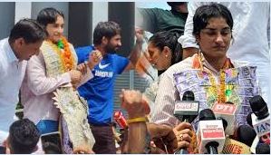 विनेश फोगाट पेरिस ओलंपिक में हिस्सा लेने के बाद जब देश वापस लौटी तो वह अपने स्वागत को देखने के बाद जहां भावुक हो गईं तो वहीं उन्होंने कहा कि मैं सभी देशवासियों का धन्यवाद कहना चाहती हूं और खुद को काफी भाग्यशाली मानती हूं। विनेश को एक चैंपियन की तरह देश वापस लौटने पर स्वागत किया गया है। बता दें कि गोल्ड मेडल मैच से ठीक पहले अयोग्य करार दिए जाने के बाद विनेश ने कुश्ती से अपने संन्यास का ऐलान कर दिया था।
