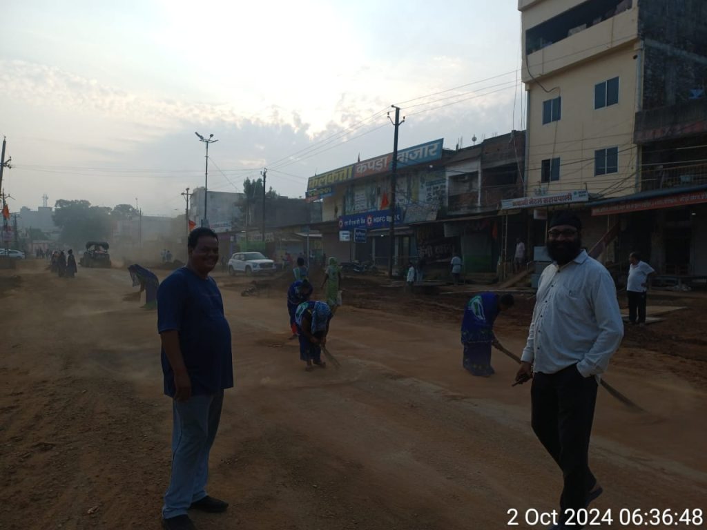 आज भोर के समय सुबह 5.30 बजे से नगरपालिका अध्यक्ष चंद्र कुमार पटेल के नेतृव मे स्वच्छता ही सेवा पखवाड़ा अभियान अंतर्गत अपने हाथों में झाड़ू लेकर नगर के मुख्य मार्गों की साफ़ सफाई की गई. दर्जनों सफाई कर्मियों द्वारा पिछले करीब 15 दिनों से गली मोहल्लों सरकारी संस्थाओं और मुख्य मार्गों मे लगातार साफ सफाई कर लोगों को सफ़ाई के प्रति जागरूक किया हैl