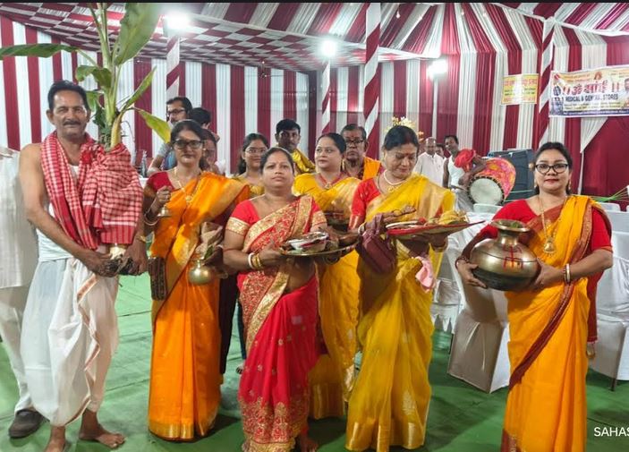 सुबह 4.30 बजे, टिकरापारा कालीबाड़ी सेवा समिति की महिला कार्यकारिणी के सदस्यों ने तालाब में जाकर कोलाबोऊ स्नान की परंपरा को निभाया। यही से शुरू होता है, सप्तमी पुजा।