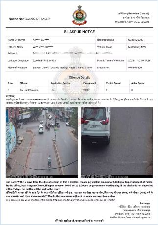 बिलासपुर जिले में रेड सिग्नल तोड़ने पर एसपी रजनेश सिंह की गाड़ी का चालान कट गई है. दरअसल एसपी के ड्राइवर ने रेड सिग्नल जंप कर ट्रैफिक रूल तोड़ा था. जिसके चलते उनके मोबाइल पर 2000 का चालान का मैसेज पहुंचा है.