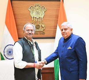 नई दिल्ली/ रायपुर सांसद श्री बृजमोहन अग्रवाल ने मंगलवार को नई दिल्ली में भारत के उपराष्ट्रपति श्री जगदीप धनखड़ जी से शिष्टाचार मुलाकात की। इस अवसर पर छत्तीसगढ़ के विकास और जनकल्याण से जुड़े विभिन्न महत्वपूर्ण मुद्दों पर सार्थक चर्चा हुई।
