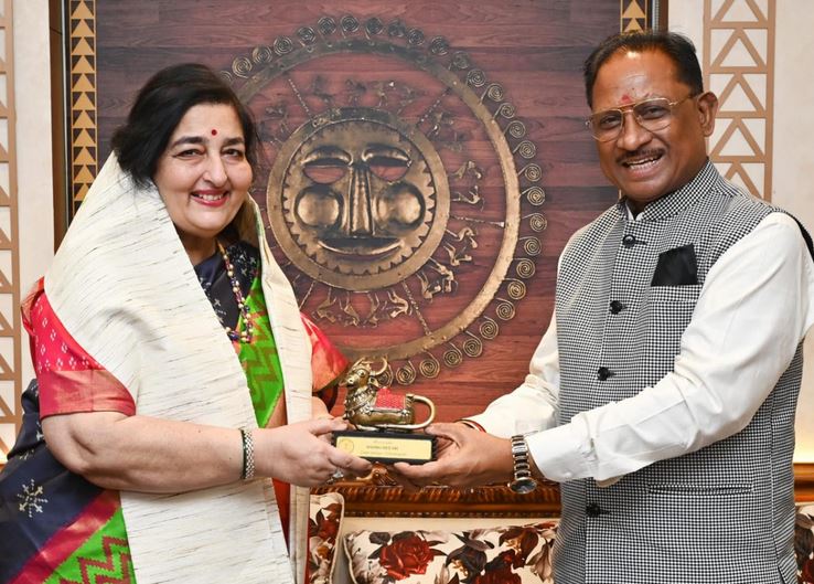 रायपुर, मुख्यमंत्री श्री विष्णु देव साय से आज छत्तीसगढ़ विधानसभा स्थित उनके कक्ष में पद्मश्री अनुराधा पौडवाल ने सौजन्य भेंट की। मुख्यमंत्री श्री साय ने छत्तीसगढ़ आगमन पर शॉल और बेल मेटल की नन्दी भेंट कर उनका स्वागत और अभिनंदन किया। मुख्यमंत्री श्री साय और पद्मश्री अनुराधा पौडवाल के मध्य छत्तीसगढ़ की लोककला, गीत-संगीत और संस्कृति को लेकर विस्तृत चर्चा हुई। इस अवसर पर विधायक और पद्म श्री अनुज शर्मा उपस्थित थे।