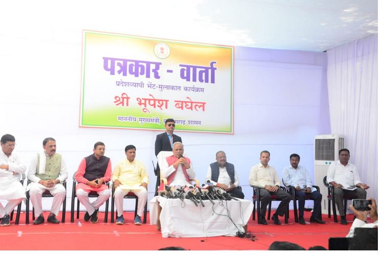 रायपुर. मुख्यमंत्री श्री भूपेश बघेल डोंगरगढ़ स्थित सर्किट हाउस में पत्रकार वार्ता को संबोधित कर रहे हैं।