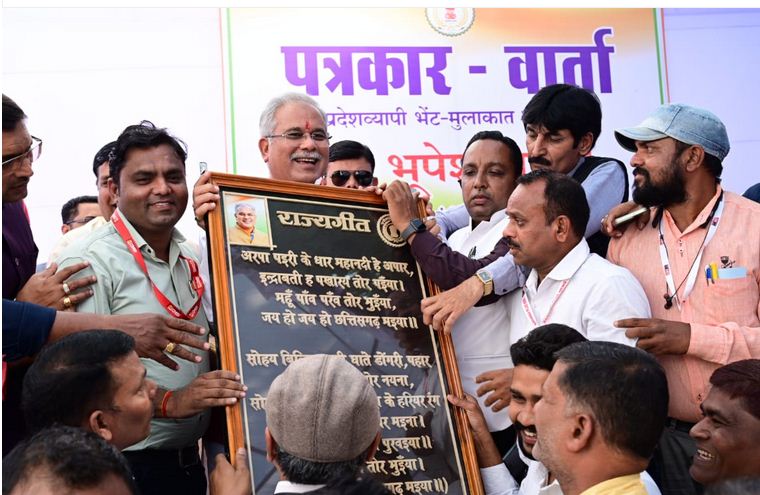 प्रेस क्लब के सदस्यों ने इस अवसर पर मुख्यमंत्री श्री भूपेश बघेल को राज्य गीत भेंट किया।