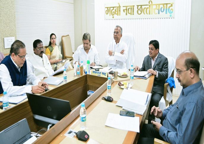 रायपुर. लोक निर्माण मंत्री श्री ताम्रध्वज साहू की अध्यक्षता में आज यहां उनके सिविल लाइन स्थित निवास कार्यालय में राज्य स्तरीय परियोजना समिति (मंत्री समूह) की बैठक हुई। बैठक में परियोजना समिति के सदस्य वन एवं परिवहन मंत्री श्री मोहम्मद अकबर, नगरीय प्रशासन मंत्री डॉ. शिव कुमार डहरिया एवं खाद्य एवं संस्कृति मंत्री श्री अमरजीत भगत शामिल हुए।