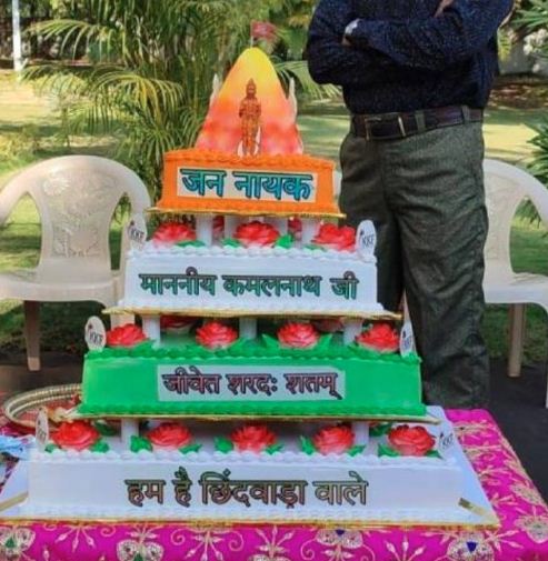 भोपाल. मध्यप्रदेश में पूर्व सीएम कमलनाथ के बर्थडे केक कटिंग पर सियासी बवाल मच गया है। केक की डिजाइन को लेकर कमलनाथ पर बीजेपी हमलावर हुई है। बीजेपी ने कहा कि केक का शेप एक मंदिर की तरह है, जिसमें ऊपर हनुमानजी का फोटो और झंडा लगा हुआ है।