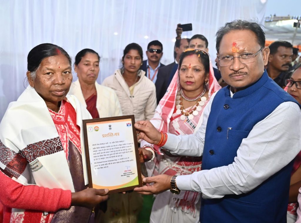 रायपुर। मुख्यमंत्री विष्णुदेव साय ने आज जशपुर जिले के पगुराबहार गांव में आयोजित 9 वें सशस्त्र सेना वयोवृद्ध दिवस पर सेना के वीर जवानों के साहस और बलिदान को नमन किया. इस अवसर पर उन्होंने 1971 के भारत-पाकिस्तान युद्ध में अपनी वीरता का प्रदर्शन कर राष्ट्रपति द्वारा सेना मेडल से सम्मानित भागलपुर निवासी 81 वर्षीय अरुण कुमार का सम्मान किया. मुख्यमंत्री ने उन्हें शाल, श्रीफल और प्रशस्ति पत्र भेंटकर उनके अदम्य साहस की सराहना की. अरुण कुमार ने अपने युद्ध के अनुभव साझा कर देशसेवा के गौरवशाली क्षणों को याद किया.