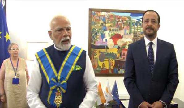 निकोसिया। प्रधानमंत्री नरेन्द्र मोदी को साेमवार को यहां साइप्रस के सर्वोच्च नागरिक सम्मान से अलंकृत किया गया।