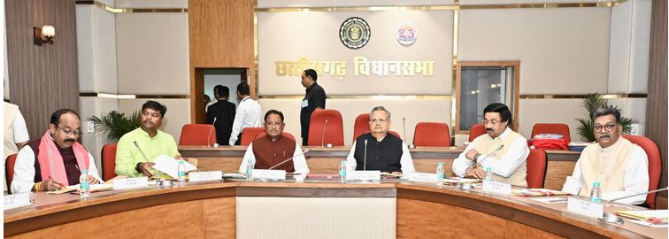 रायपुर, विधानसभा अध्यक्ष डॉ रमन सिंह की अध्यक्षता में विधानसभा के समिति कक्ष में कार्य मंत्रणा समिति की बैठक आयोजित की गई। बैठक में मुख्यमंत्री श्री विष्णु देव साय, नेता प्रतिपक्ष डॉ. चरणदास महंत, उपमुख्यमंत्री श्री अरुण साव, संसदीय कार्य मंत्री श्री केदार कश्यप, वित्त मंत्री श्री ओ पी चौधरी, कृषि मंत्री श्री रामविचार नेताम, विधायक श्री अजय चंद्राकर, विधायक श्री धर्मजीत सिंह सहित समिति के अन्य सदस्य उपस्थित थे।