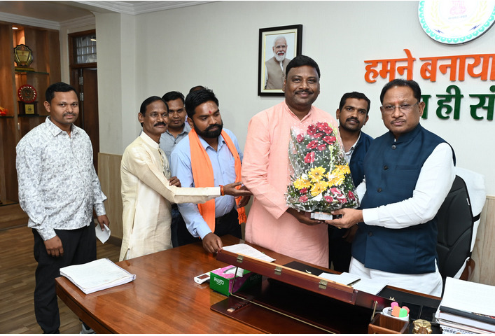 रायपुर। छत्तीसगढ़ प्रदेश लोक कलाकार कल्याण संघ के प्रतिनिधि मंडल ने विष्णु देव साय मुख्यमंत्री छत्तीसगढ़ शासन से छत्तीसगढ़ प्रदेश के कलाकारों के विभिन्न मांगों को मुख्यमंत्री को विस्तार पूर्वक प्रदेश अध्यक्ष गुरुदास मानिकपुरी एवं रमेश कुमार गुप्ता प्रदेश उपाध्यक्ष ने अवगत कराया। जिसे मुख्यमंत्री ने बहुत स्नेह पूर्वक पत्रों को पढ़ा और सुना और अतिशीघ्र सभी मांगों को पूरा करने का आश्वासन दिया।