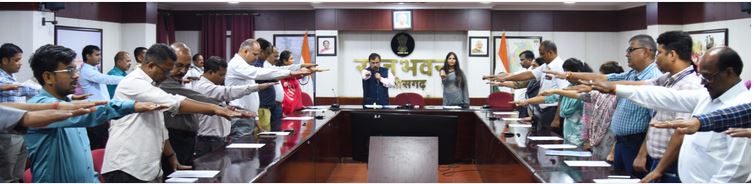रायपुर, राजभवन में सतर्कता जागरूकता सप्ताह के अवसर पर आज अधिकारियों-कर्मचारियों ने ईमानदारी और पारदर्शिता के प्रति शपथ ली। यह सप्ताह 27 अक्टूबर से 02 नवम्बर 2025 तक मनाया जा रहा है।