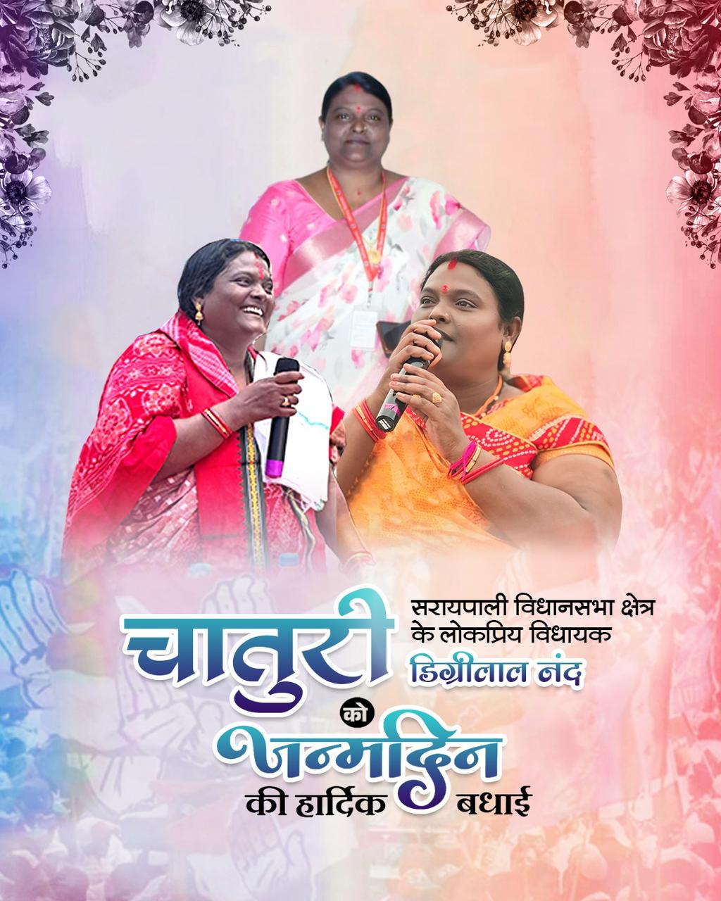सरायपाली विधानसभा क्षेत्र की विधायक चातुरी नंद का जन्मदिन क्षेत्रभर में हर्षोल्लास और जनसेवा के रूप में मनाया गया। इस अवसर पर विधायक कार्यालय सरायपाली पहुंचकर कांग्रेस कार्यकर्ताओं, जनप्रतिनिधियों, समाजसेवियों और क्षेत्रीय नागरिकों ने विधायक को मुलाकात कर जन्मदिन की शुभकामनाएं दीं। विधायक कार्यालय सरायपाली में कार्यकर्ताओं और समर्थकों की उपस्थिति में विधायक चातुरी नंद ने केक काटकर जन्मदिन धूमधाम से मनाया, जहां बड़ी संख्या में कांग्रेसजन, पदाधिकारी एवं स्थानीय नागरिक उपस्थित रहे।