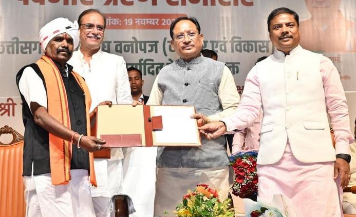 वनमंत्री श्री केदार कश्यप ने कहा कि मुख्यमंत्री श्री विष्णुदेव साय ने न केवल चरण पादुका योजना को पुनः प्रारंभ किया है, बल्कि विभिन्न योजनाओं के माध्यम से वनोपज संग्राहक परिवारों के जीवन स्तर में सुधार के लिए प्रभावी कदम लगातार उठाए जा रहे हैं।