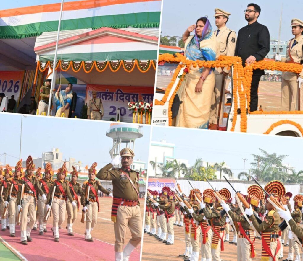 महासमुंद/ 77वें गणतंत्र दिवस समारोह के अवसर पर सांसद श्रीमती रूपकुमारी चौधरी ने जिला मुख्यालय स्थित मिनी स्टेडियम में आयोजित मुख्य गणतंत्र दिवस समारोह में राष्ट्रीय ध्वज फहराकर, राष्ट्रध्वज को सलामी दी। राष्ट्रगान पश्चात राष्ट्रीय गीत वंदे मातरम का गायन किया गया। सांसद श्रीमती चौधरी ने हर्ष के प्रतीक तीन रंग के गुब्बारें आकाश में छोड़े। इसके पश्चात सांसद श्रीमती चौधरी ने परेड निरीक्षण कर परेड की सलामी ली। तत्पश्चात मुख्यमंत्री का जनता के नाम संदेश का वाचन किया। मंच पर कलेक्टर विनय कुमार लंगेह, पुलिस अधीक्षक प्रभात कुमार मौजूद थे।इसके पश्चात् प्लाटून 20वीं वाहिनी छ.ग. सशस्त्र पुलिस बल, जिला पुलिस बल, नगर सेना महिला प्लाटून, सीनियर डिवीजन एन.सी.सी., एन.एस.एस महाविद्यालय, जूनियर डिवीजन एन.सी.सी., गाईड, स्काउट, एन.एस.एस विद्यालय एवं रेडक्रॉस के टुकड़ियों द्वारा अनुशासित मार्च पास्ट एवं सलामी दी गई। इस दौरान कार्यक्रम स्थल देशभक्ति के वातावरण से ओत-प्रोत हो गया। समारोह के दौरान सांसद श्रीमती रूपकुमारी चौधरी ने जिले के शहीदों के परिजनों से आत्मीय मुलाकात की। इस अवसर पर उन्होंने शहीद परिवारों को शॉल एवं श्रीफल भेंट कर सम्मानित किया तथा उनके त्याग, बलिदान और राष्ट्रसेवा को नमन किया। तत्पश्चात विभिन्न 16 स्कूलों के 1000 छात्र-छात्राओं द्वारा समन्वय एवं ऊर्जा से भरपूर पी.टी. का प्रदर्शन किया गया तथा इसके पश्चात 6 विद्यालयों के विद्यार्थियों द्वारा देशभक्ति से ओत-प्रोत रंगारंग सांस्कृतिक कार्यक्रम प्रस्तुत किए गए। वहीं पुलिस विभाग द्वारा “कहो नशे को अलविदा” विषय पर विशेष प्रस्तुति देकर नशामुक्ति का सशक्त संदेश दिया गया।इसके अलावा वन विभाग, शिक्षा विभाग, स्वास्थ्य विभाग, महिला बाल विकास, उद्यानिकी विभाग, जल संसाधन, मछली पालन, आदिवासी विभाग, पशुपालन, पीएचई, क्रेडा/ विद्युत, कृषि विभाग और खाद्य विभाग द्वारा शासकीय