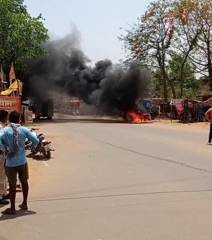 घटना के तुरंत , मौके पर पुलिस टीम पहुची और नगर पालिका की दमकल वाहन ने आग पर काबु पाया !