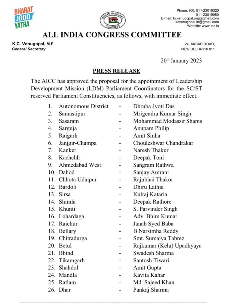 रायपुर. राजीव भवन रायपुर से प्रदेश प्रवक्ता दास जी ने विज्ञप्ति जारी कर बताया कि ओबीसी के प्रदेश अध्यक्ष डॉ चौलेश्वर चंद्राकर जो लगातार भारत जोड़ो यात्रा में माननीय राहुल गांधी जी के साथ चल रहे है। जिनके कार्य शैली व ओबीसी प्रदेश अध्यक्ष छत्तीसगढ़ के कुशल कार्यक्षमता को देखते हुये , आगामी चुनाव में बेहतर प्रदर्शन को लेकर आरक्षित सीटों के लिये रास्ट्रीय स्तर पर कोआर्डिनेटरो की एक महत्त्वपूर्ण सूची माननीय राष्ट्रीय अध्यक्ष माननीय खड़गे जी के आदेशानुसार जारी हुआ है,जिसमे डॉ चौलेश्वर चंद्राकर जी को भी शामिल किया है।